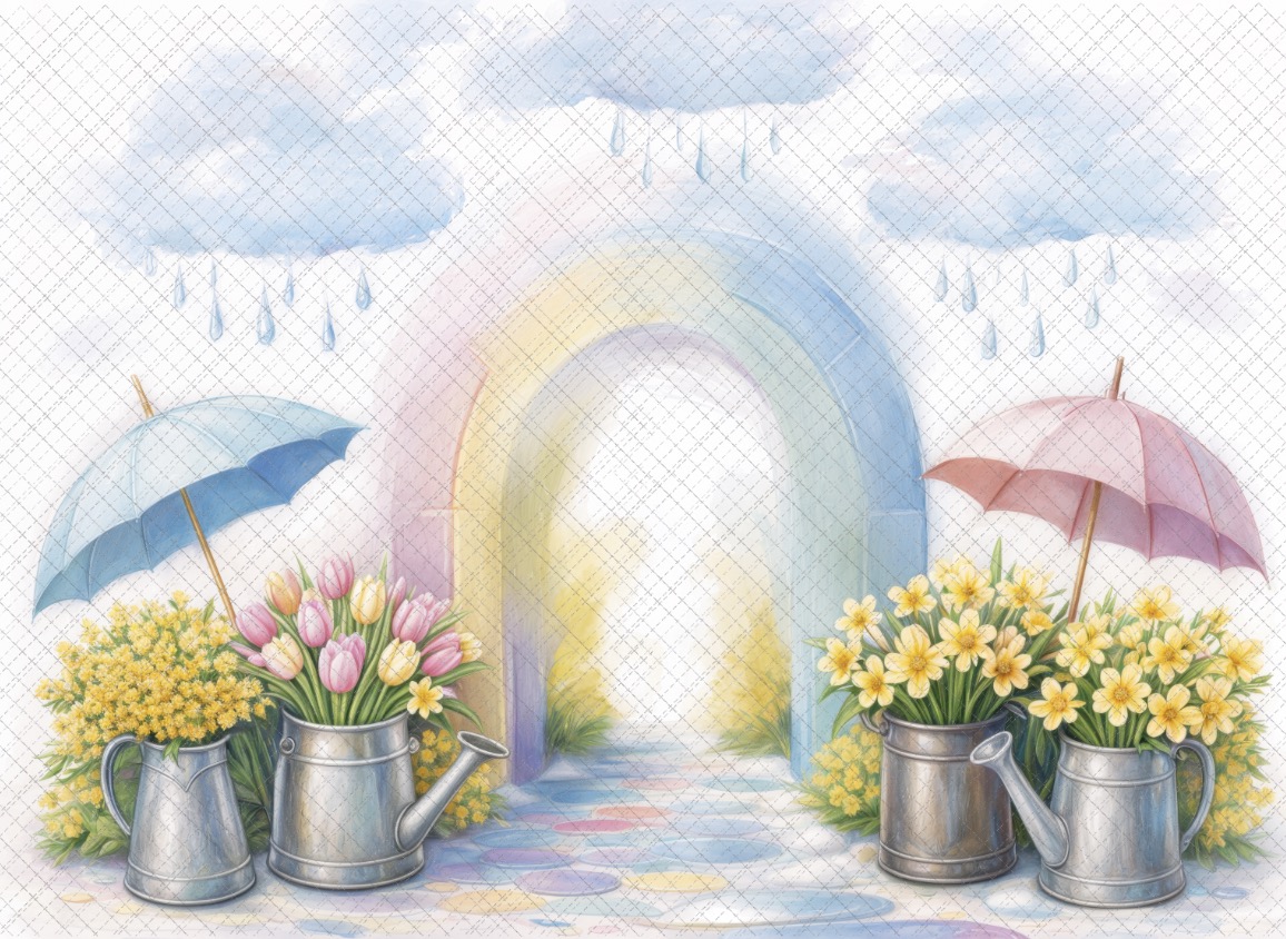 Дет сад облака и зонтики - фон неопреновый