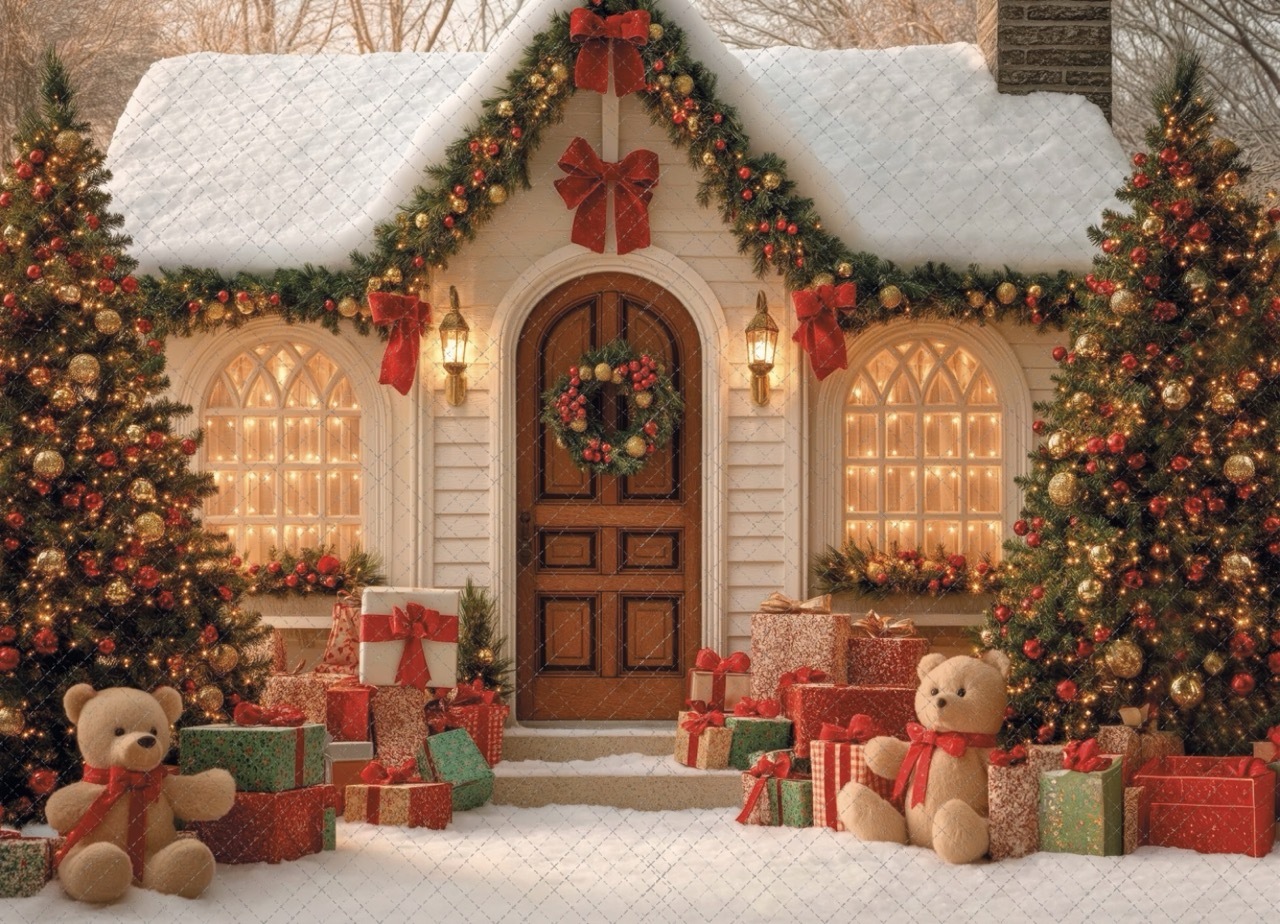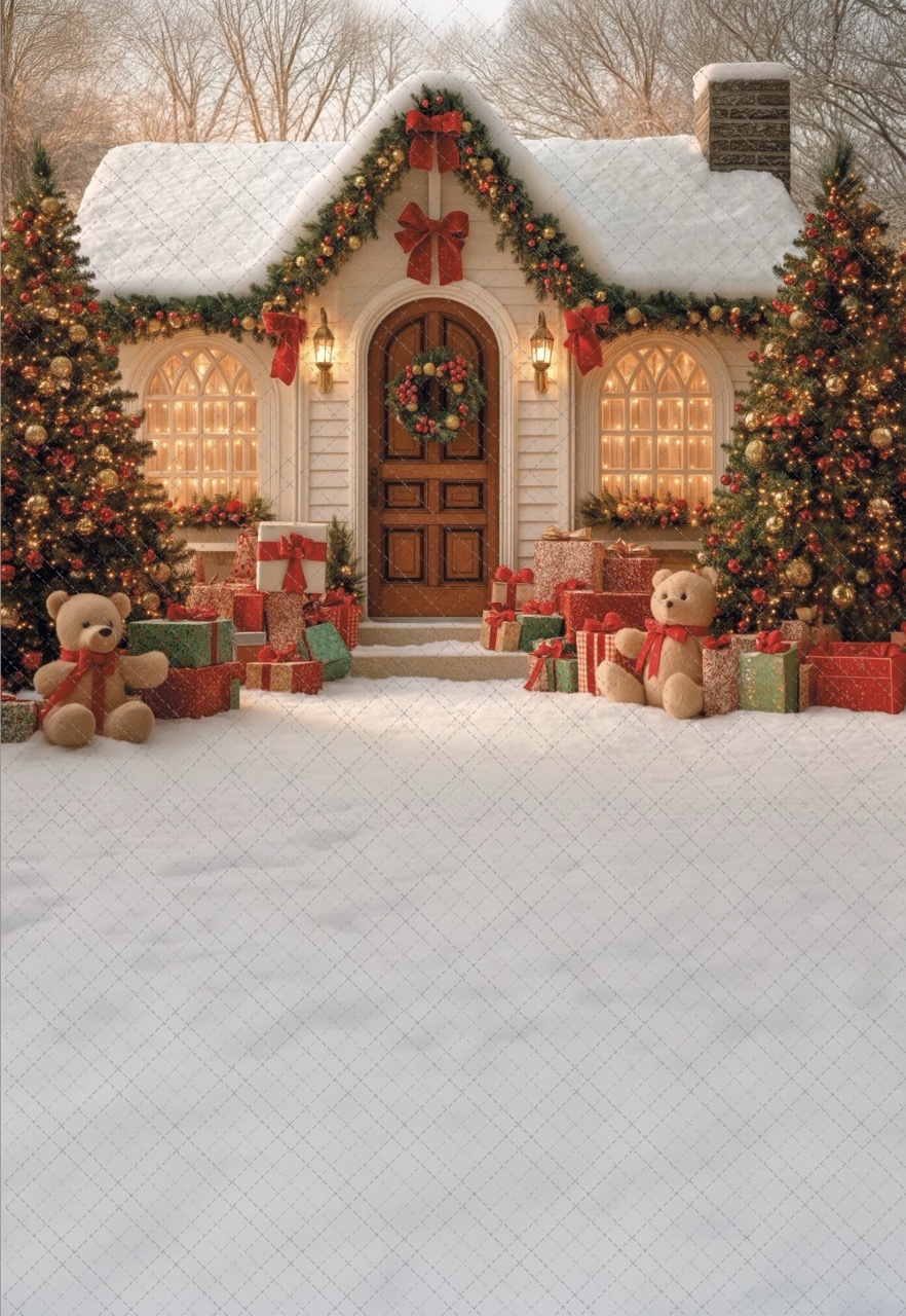 Домик зима 10.25 с мишками- фон неопреновый
