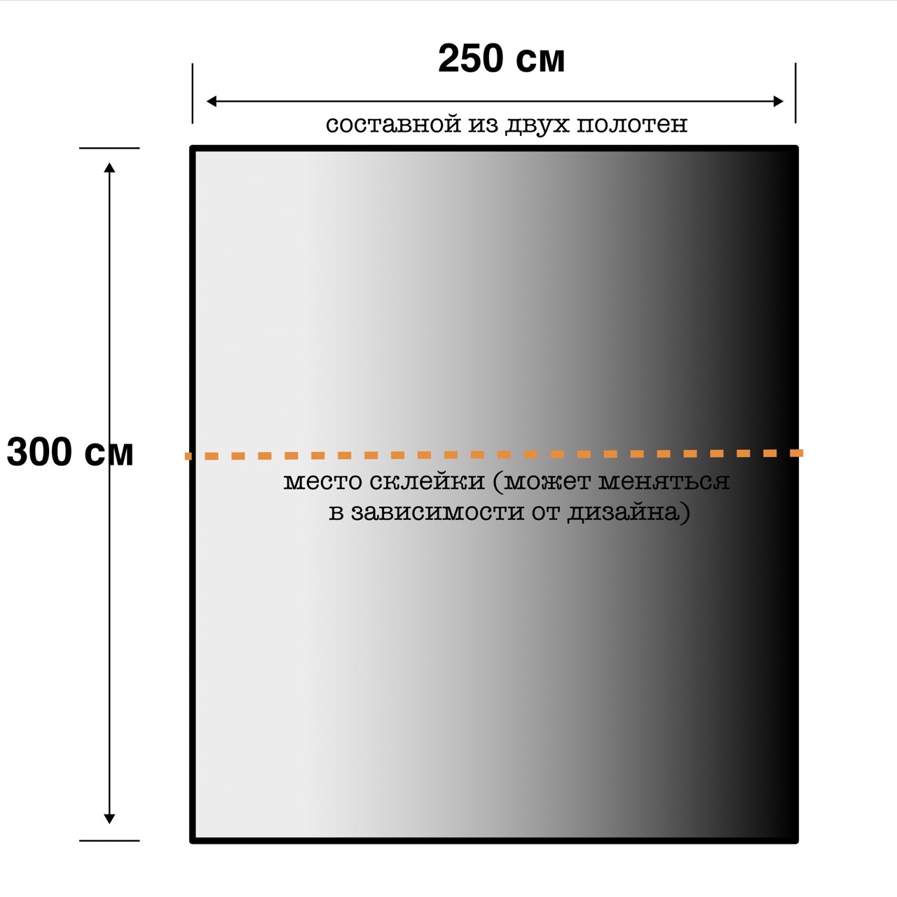 !! - Составные фоны (фоны склеенные из нескольких полотен). Шов (место склейки) на таких фонах будет виден (слабее/сильнее в зависимости от дизайна) и нуждается в ретушировании  - это надо учитывать. Эти фоны имеют свою специфику по уходу и по эксплуатации. Если Вы не знакомы с такими фонами, можете перед заказом запросить у нас инструкцию по уходу и эксплуатации таких фонов (по умолчанию высылается в электронном виде вместе с заказом). На шве в месте склейки допускаются небольшие несовпадения (сдвиги по рисунку) до 10-ти миллиметров (браком не считается).
